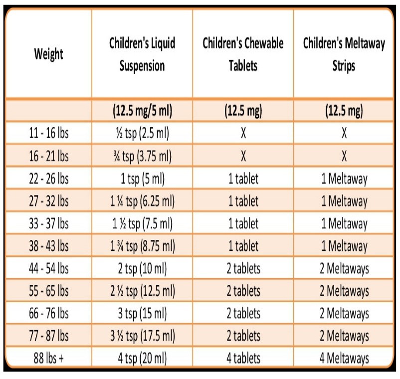 Benadryl Dosing Chart
