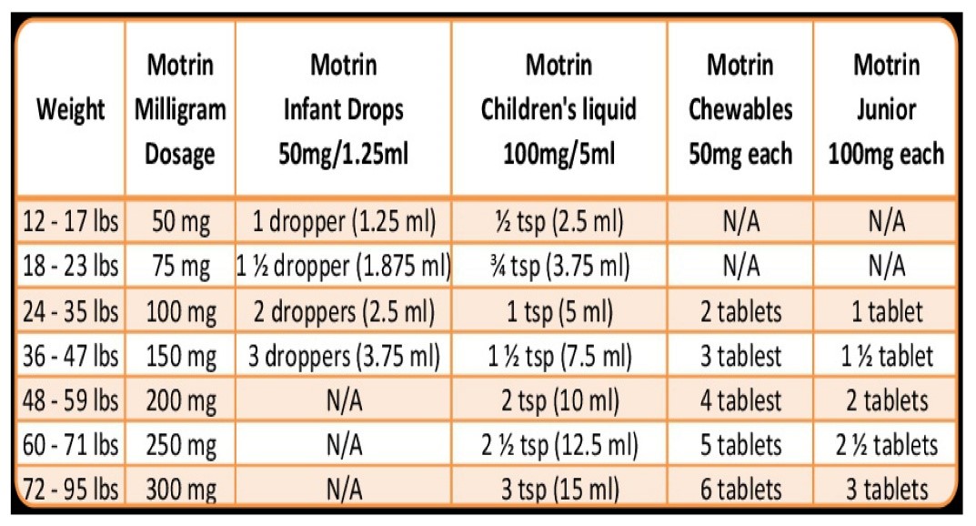 Ibuprofen (Motrin/Advil) Dosing Chart