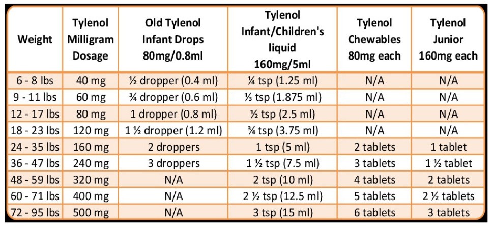 Acetaminophen (Tylenol) Dosing Chart